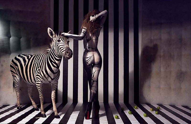 英女艺术家裸体与动物合影 抗议物化女性