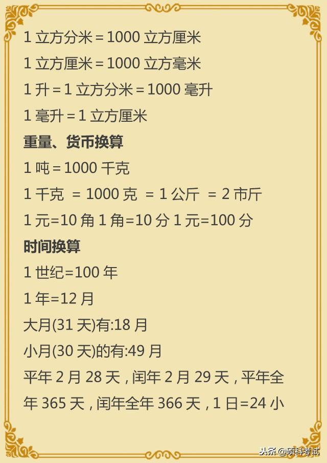 小学数学总复习,周长、面积、体积、单位换算、算术、公式汇总