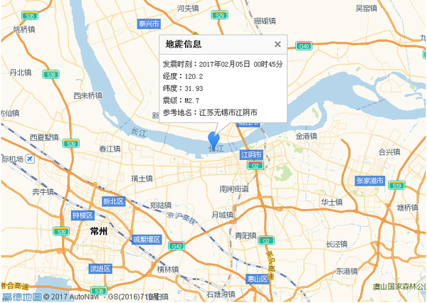 无锡江阴今晨发生2.7级地震 震中距离南通