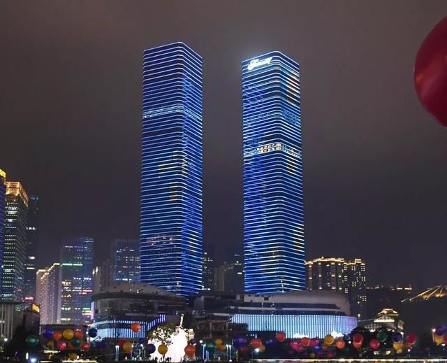 贵阳:亚洲最大楼盘花果园双子塔楼点亮人民红,吸引市民游客