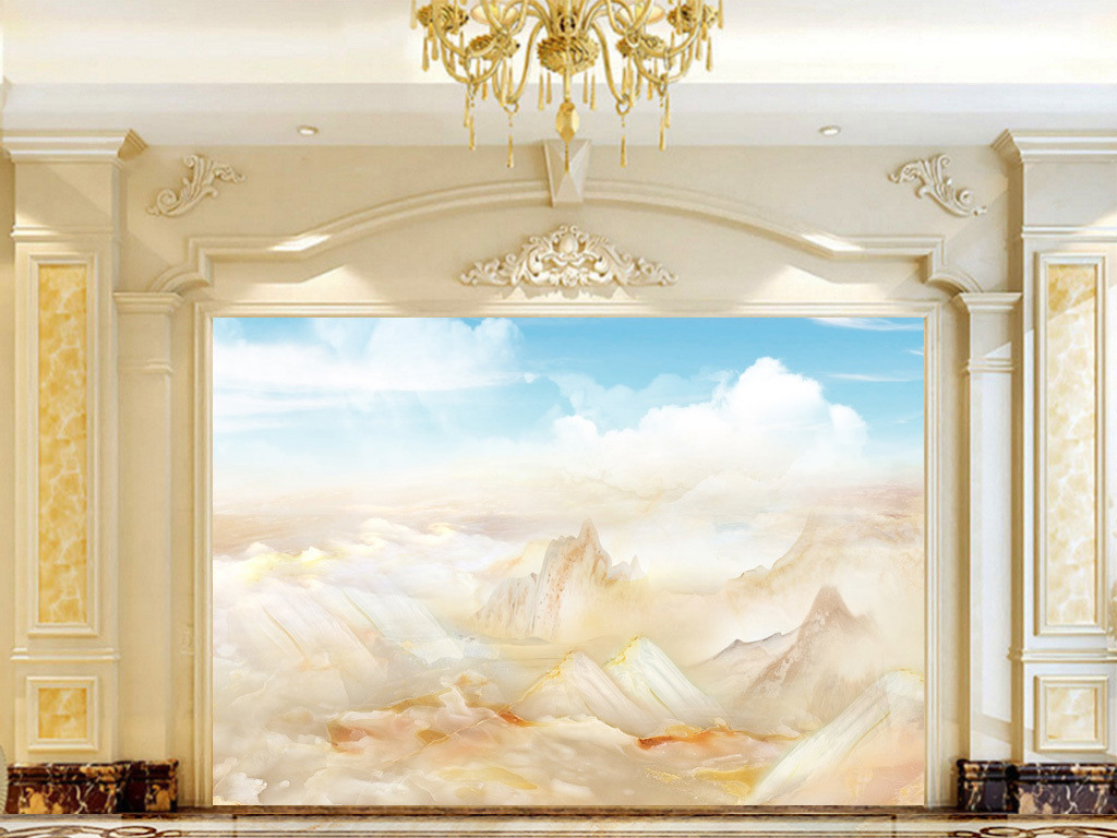 蓝天白云山水画云中歌大理石背景墙