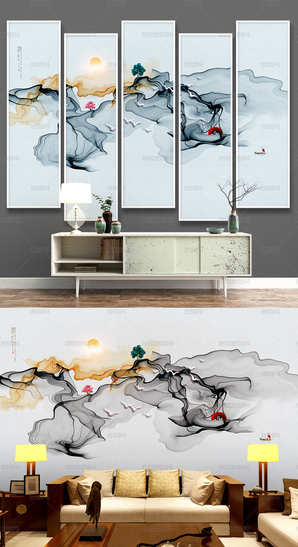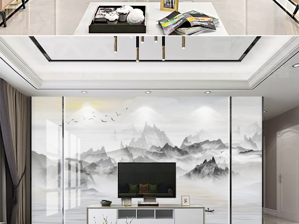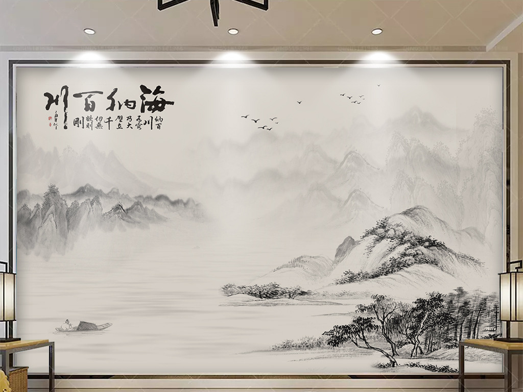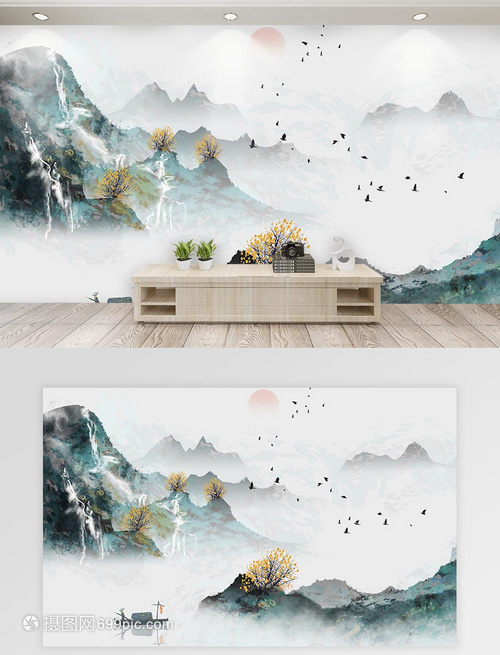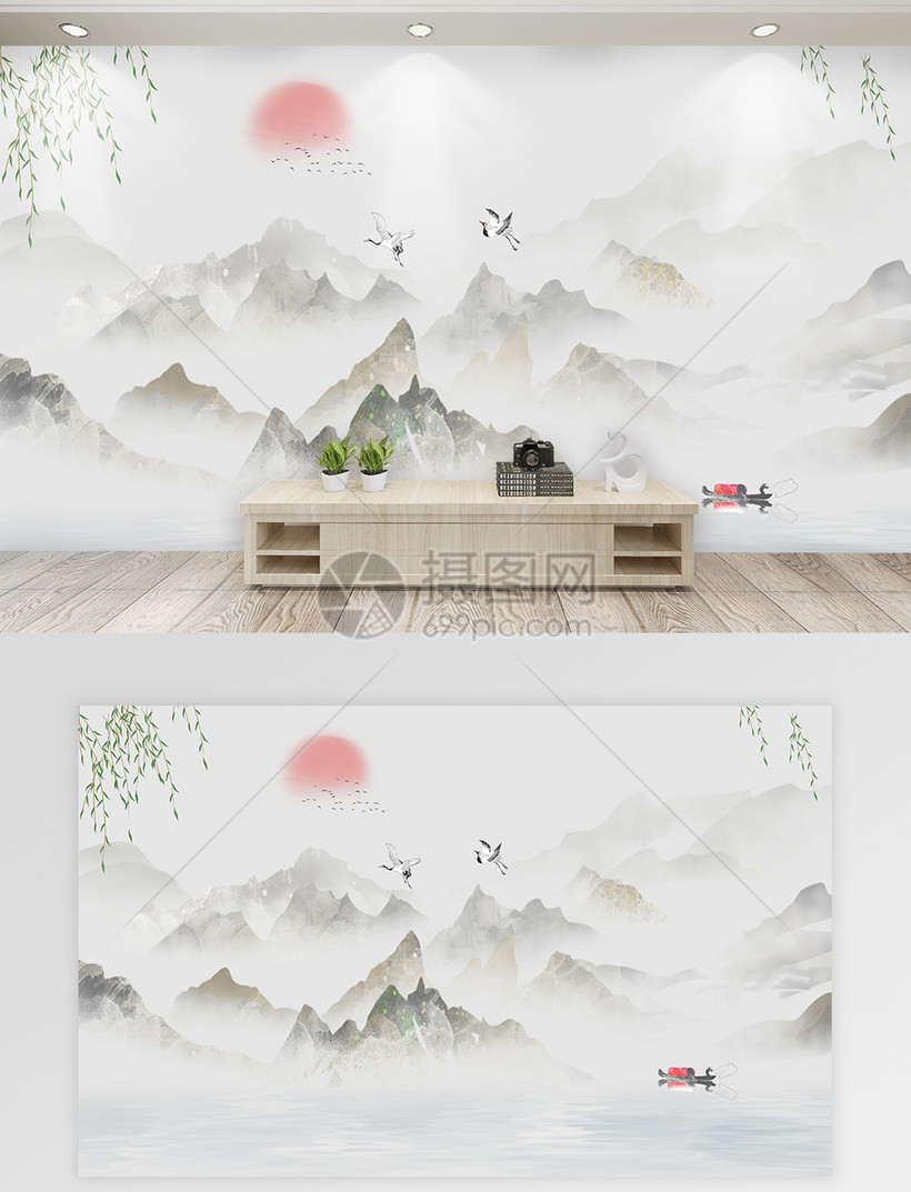 山水画背景墙设计图__其他设计_环境设计_设计图库_昵图网nipic.com