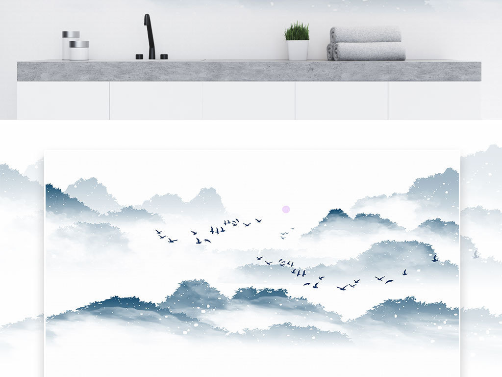 现代背景墙山水画 tif分层图片