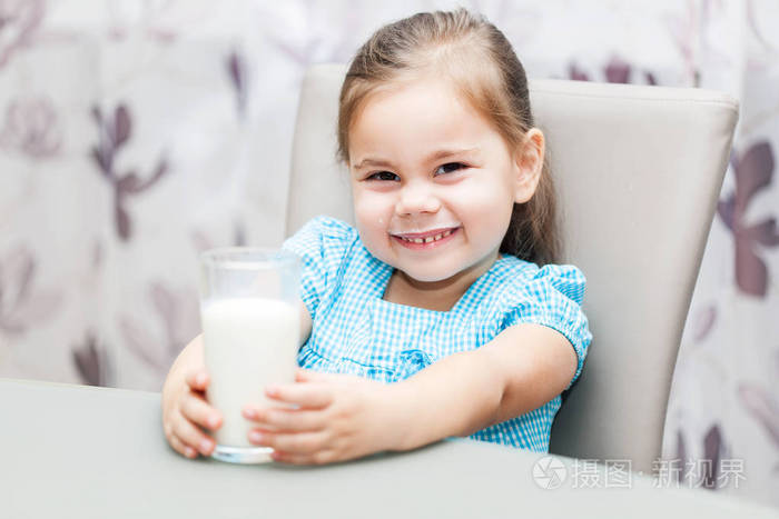 喝牛奶的健康女孩的肖像