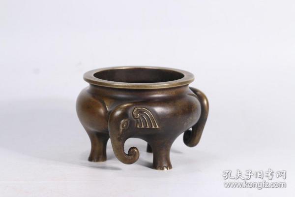 清大明宣德年制象耳阿拉伯纹铜香炉