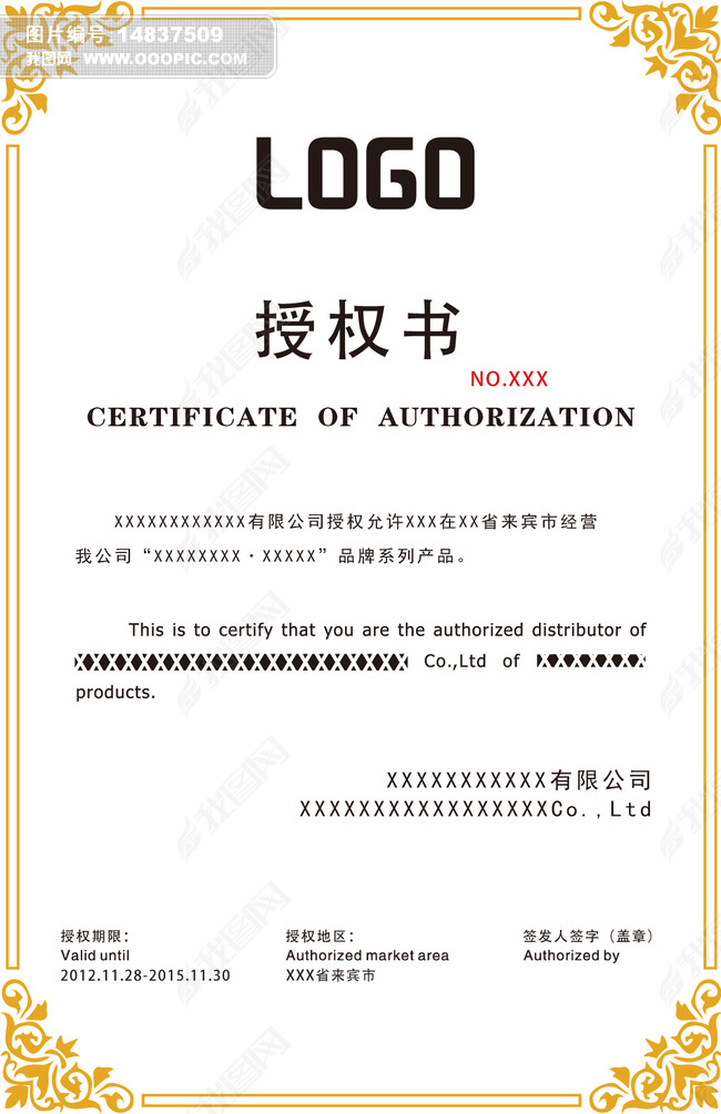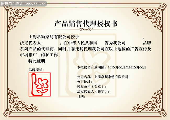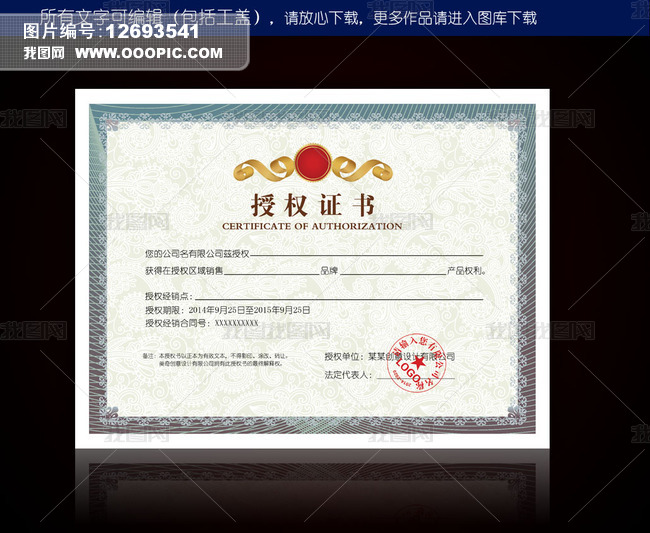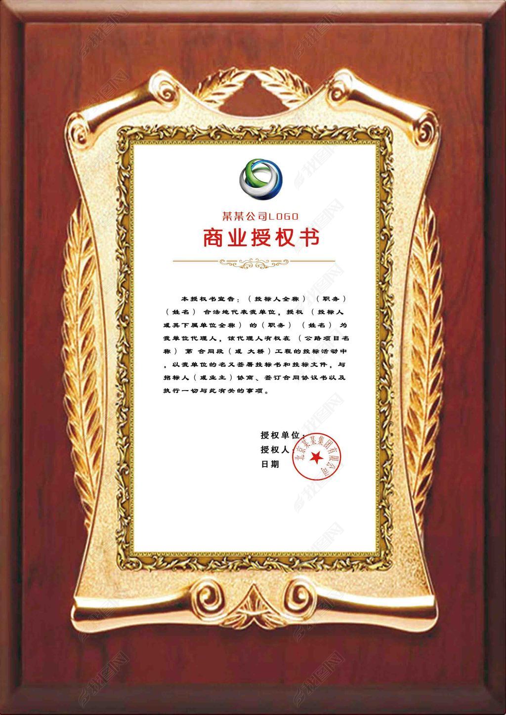 高档商业公司授权证书图片