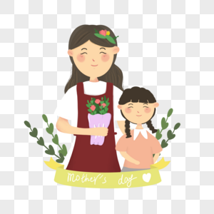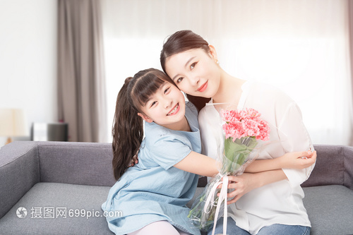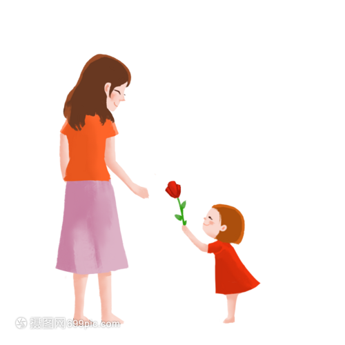 孩子抱着母亲送花母亲节小清新