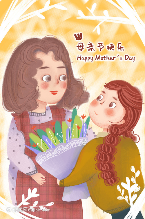 母亲节儿子送花给妈妈插画