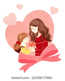 母亲节送花爱心手绘插画