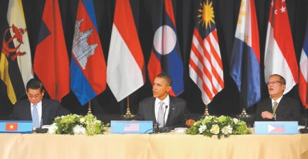 奥巴马主持东盟峰会 菲律宾国旗被倒挂