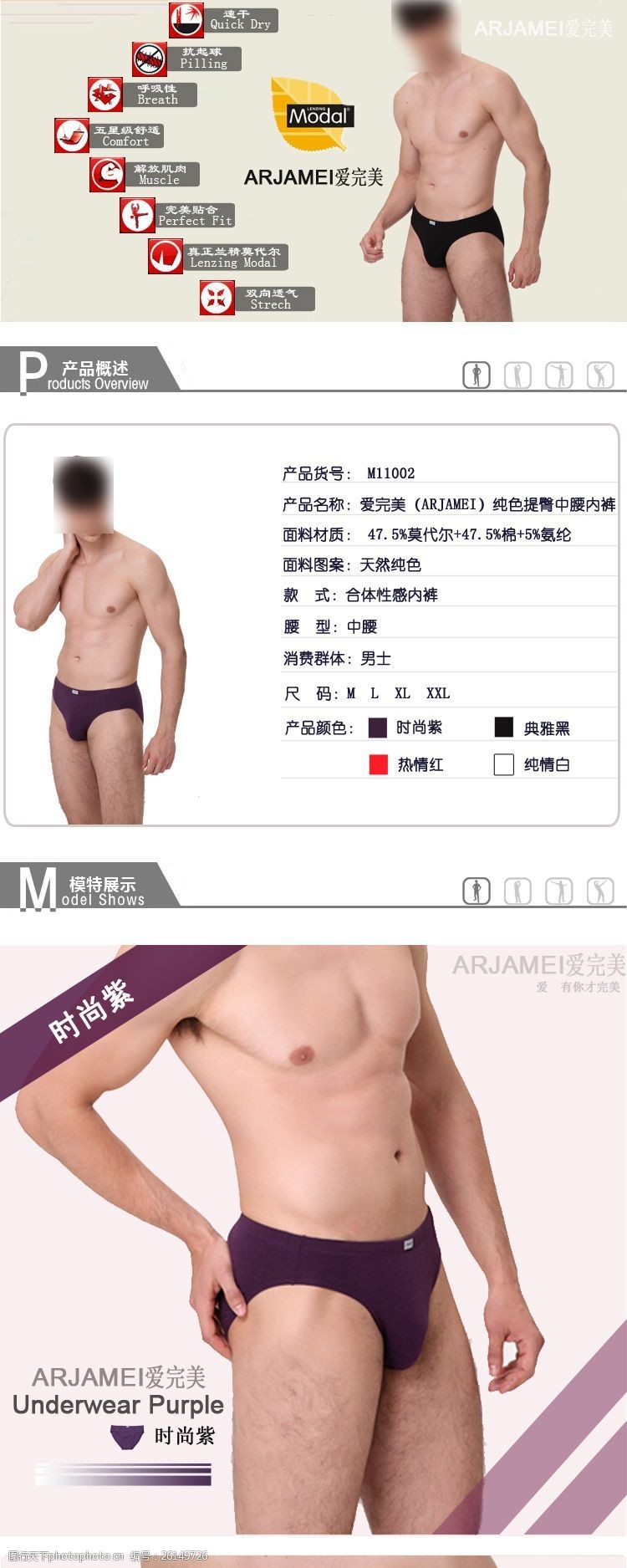 供应竹纤维莫代尔男士内衣内裤三角内裤