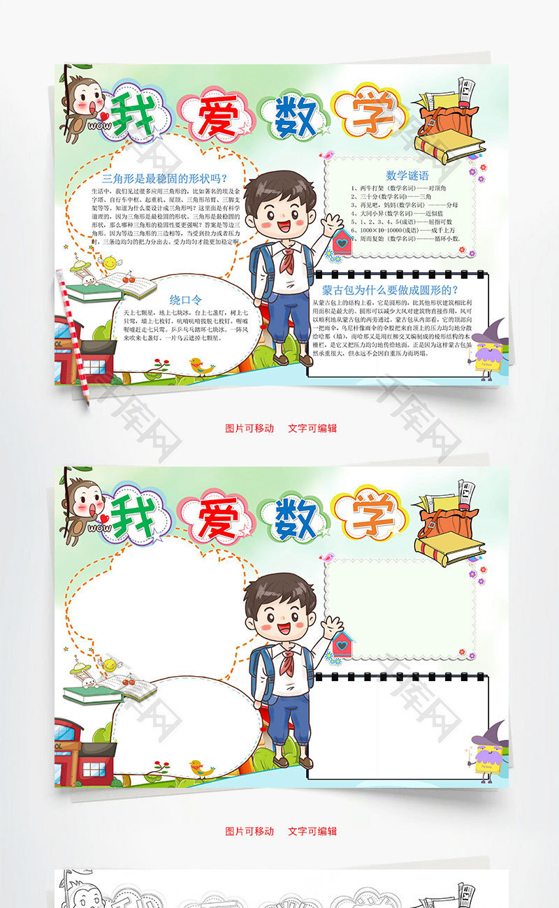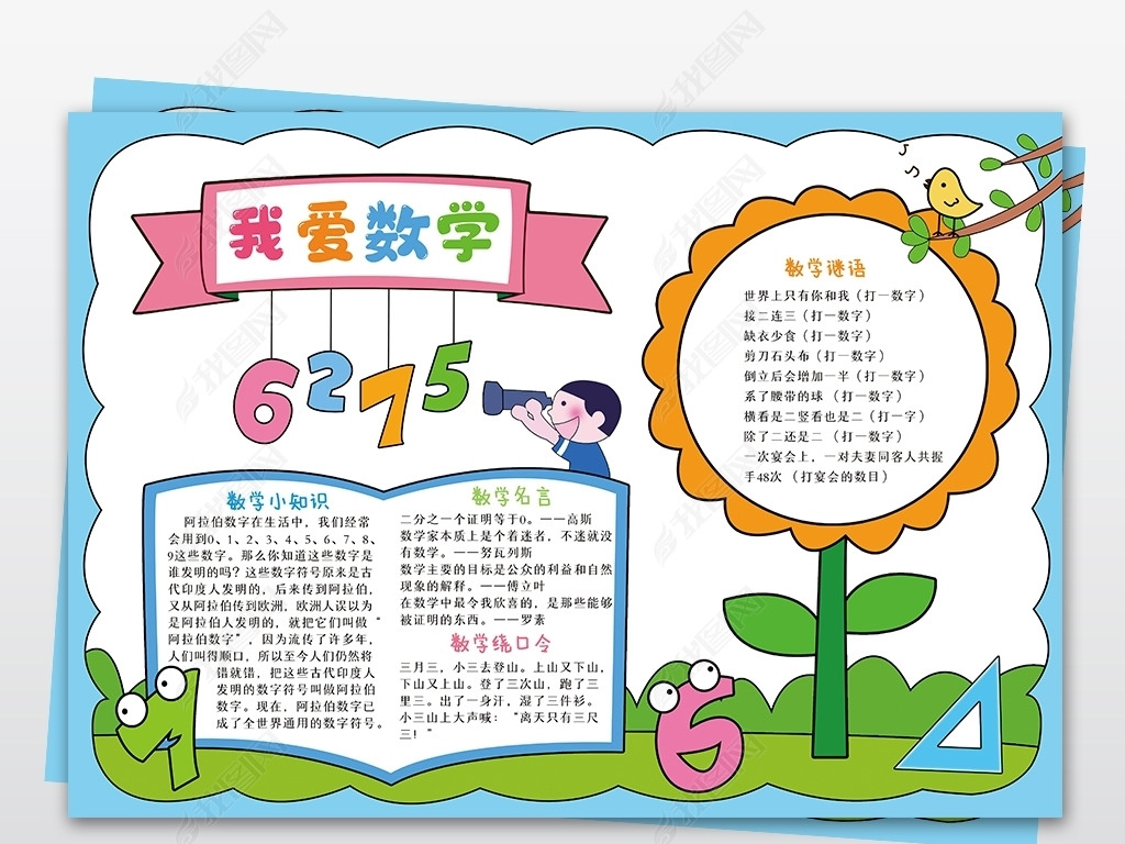 五年级上册数学手抄报-我爱数学 开动脑筋