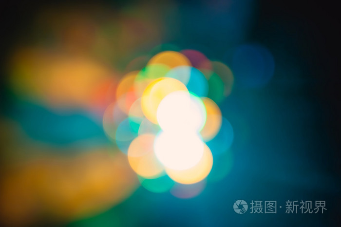 背景上的灯。模糊焦的灯在光的蓝色颜色