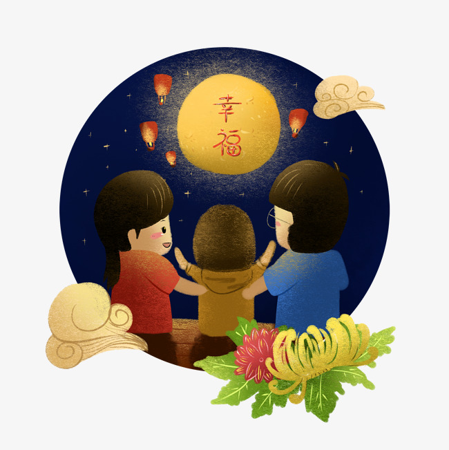 中秋节赏月的一家人素材图片免费下载_高清psd_千库网(图片编号11131881)