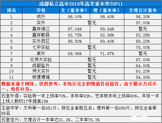 成都私立高中学校升学率是多少