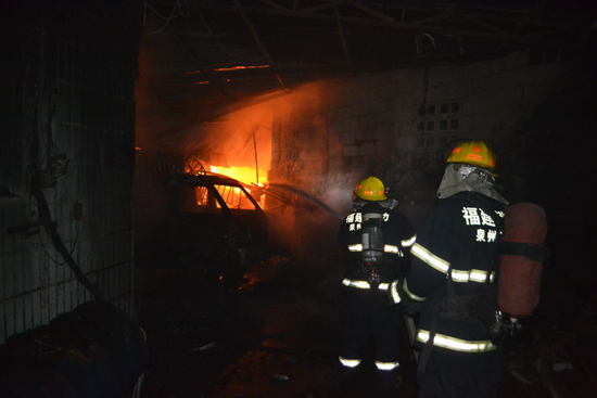 晋江安海一鞋厂凌晨起火 消防员冲进火场