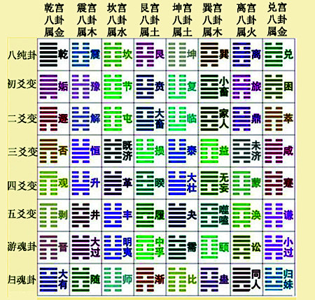 六爻快速装卦纳甲法,八卦六十四卦归宫