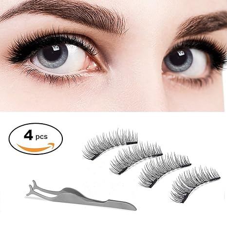 双磁性假睫毛- 不易胶,天然手工延长假眼睫毛,3D 黑色双磁性超厚超溶胶