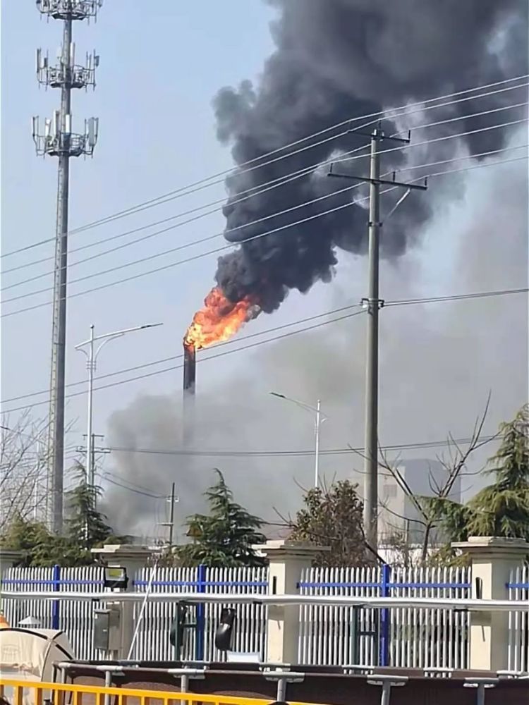 如皋一橡胶厂烟囱着火,现场浓烟滚滚!