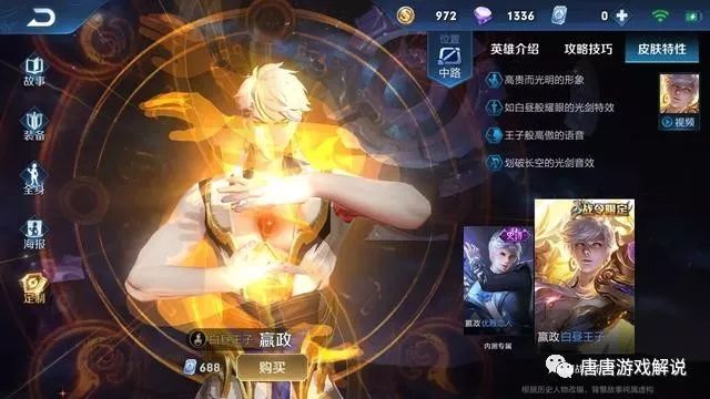 王者荣耀嬴政白昼王子介绍:不可错过哟