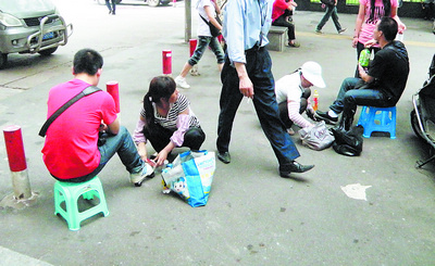 擦鞋女收编 擦鞋费翻倍