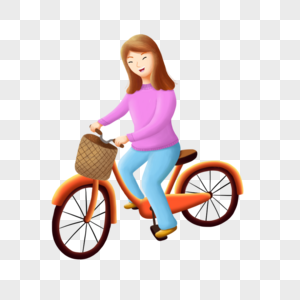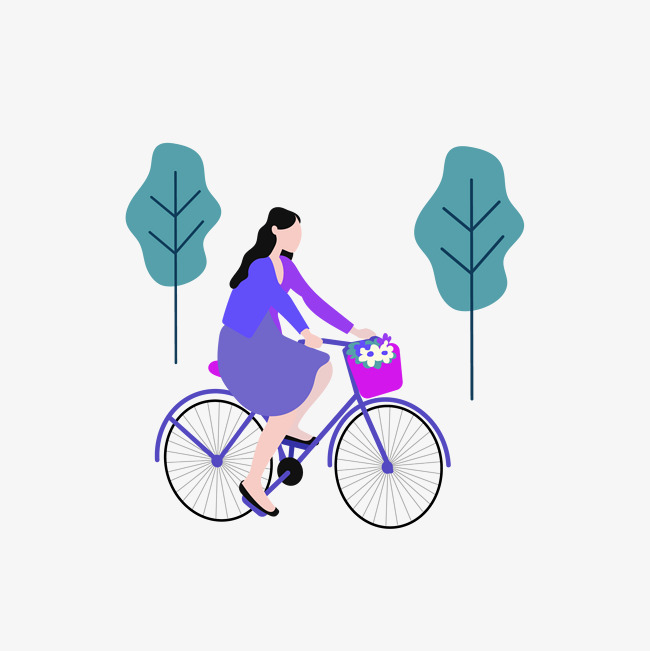简约扁平化蓝紫色骑车的女人素材图片免费