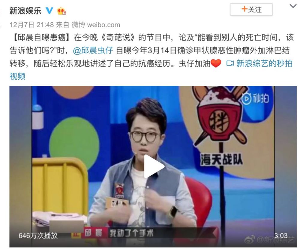 邱晨自曝抗癌经历:关于活着,死亡才是最好