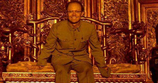 溥仪晚年来到故宫,在昔日坐过的龙椅下,