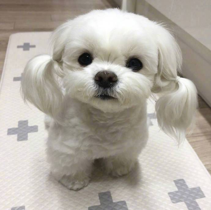 扎双马尾的马尔济斯犬,太可爱惹~!