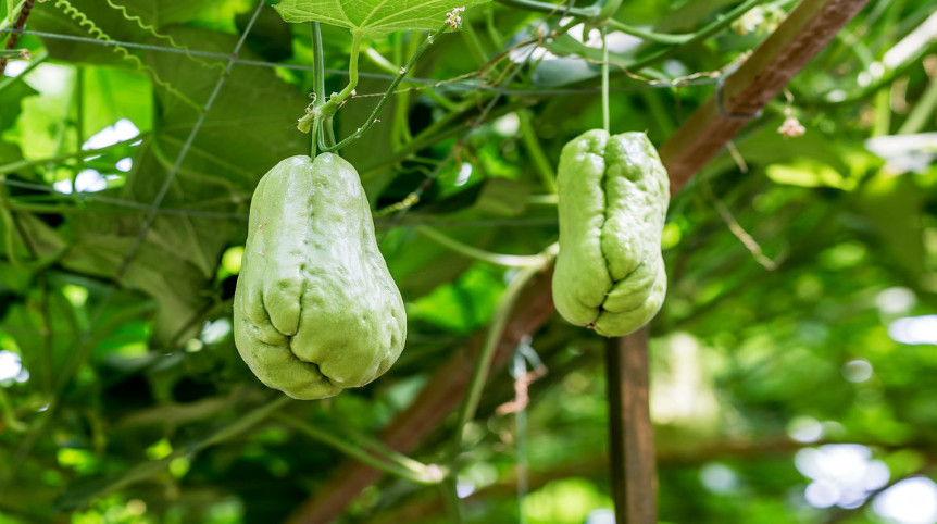 这种蔬菜人称佛手瓜,一株能结果几百颗,