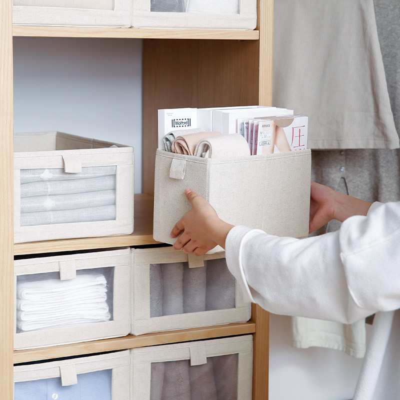 霜山日式衣柜棉麻布艺收纳盒衣物整理收纳箱可折叠衣服储物箱子