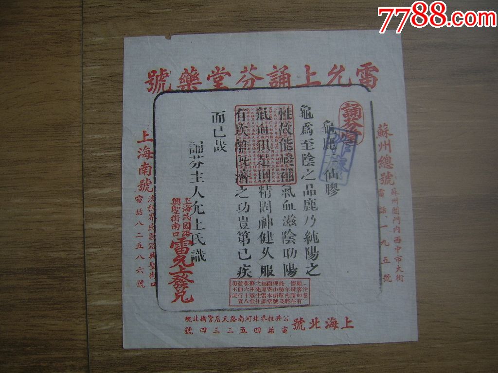 .【龟鹿二仙胶】广告说明;本堂于康熙元年.