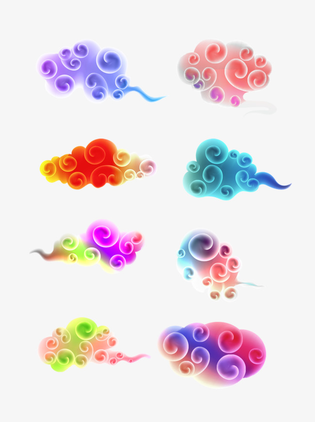 七彩渐变立体中国风祥云素材图片免费下载_高清psd_千库网(图片编号11684330)