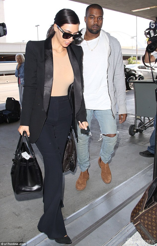 组图:卡戴珊肉色衣打底似没穿 老公贴心拎