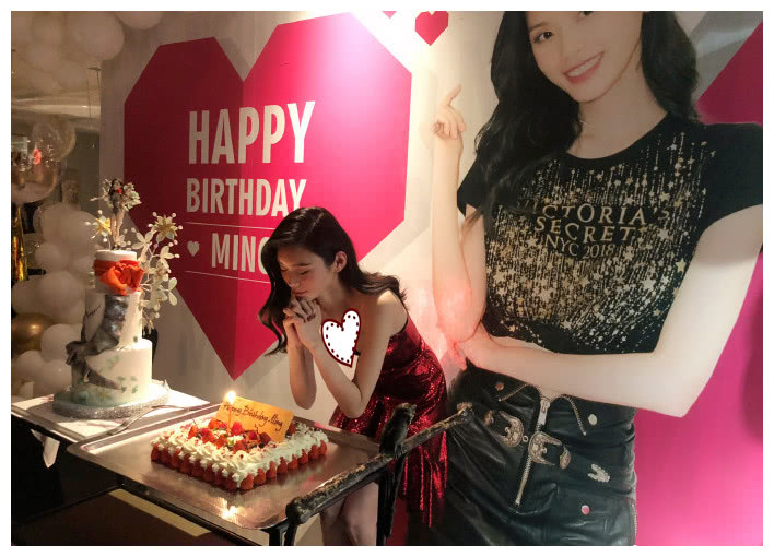 琪峰生日,穿红色衬衣满面红光,女人味十足