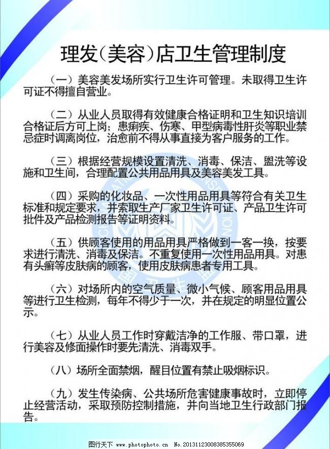 理发店个人卫生制度五病调离制度理发店员工管理制度牌