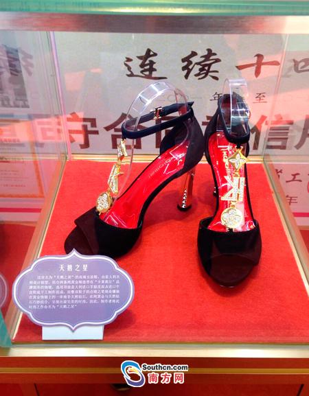 广东惠州开幕鞋文化节 展出镶钻女凉鞋