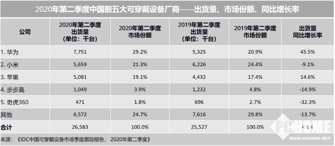 IDC数据:华为可穿戴设备Q2季度国内出货