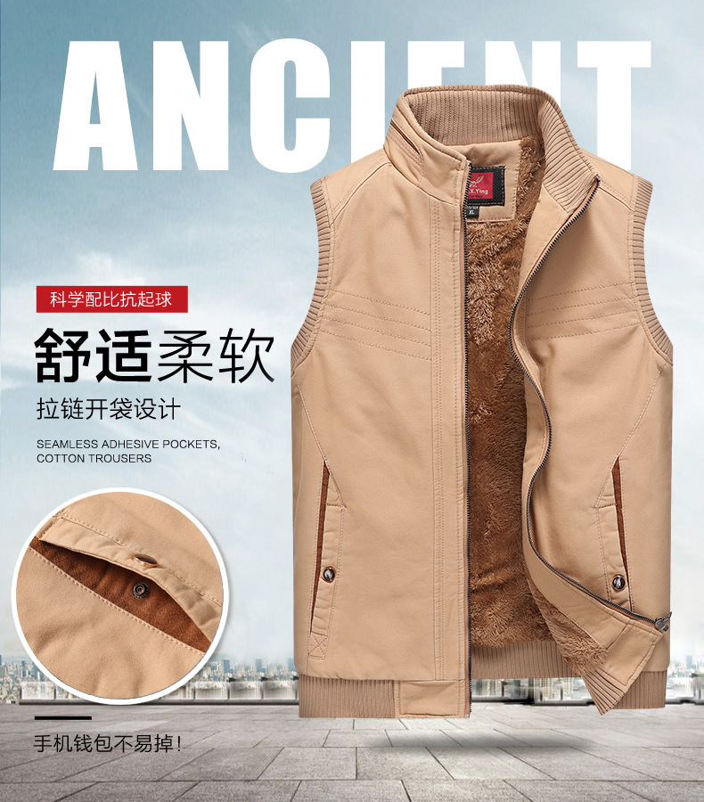 中老年加绒加厚纯棉水洗立领马甲中年宽松