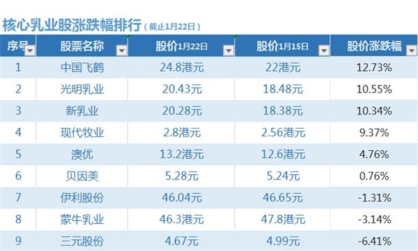 起伏:飞鹤股价涨幅最高 三元市盈率为负