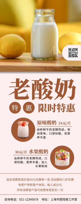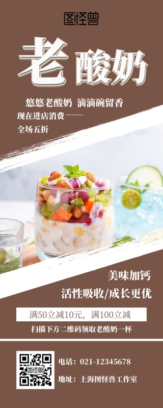 老酸奶易拉宝棕色简约配图宣传淡色折扣优惠