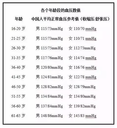 各年龄的血压正常范围图片