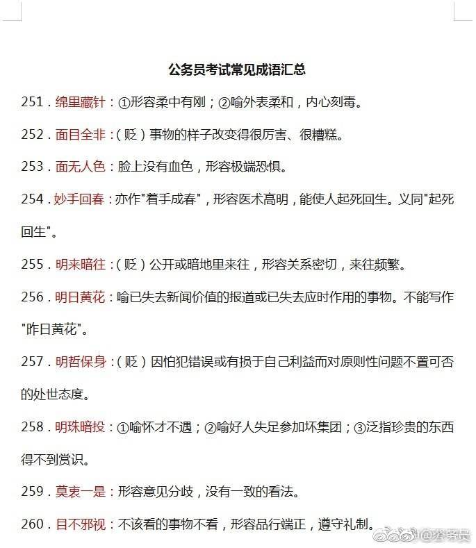 [成语积累]多省联考行测言语理解成语积累(