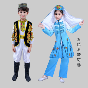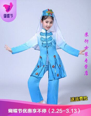 新款回族保安族撒拉族东乡族服装女装舞蹈演出56个少数民族服饰天蓝色L