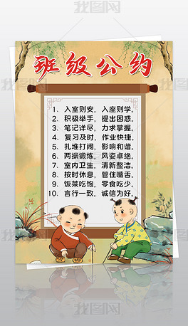 中国风班级公约小报模板中小学生班规制度纪律线描手抄报素材
