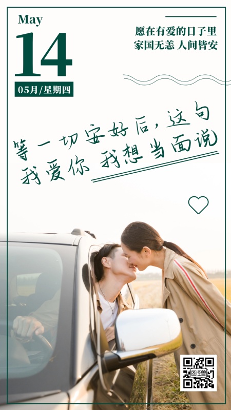 简约风5月14日情人节日签手机海报