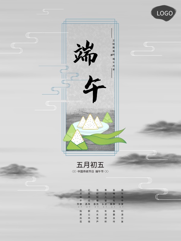 五月初五简约中国风端午节日宣传手机海报