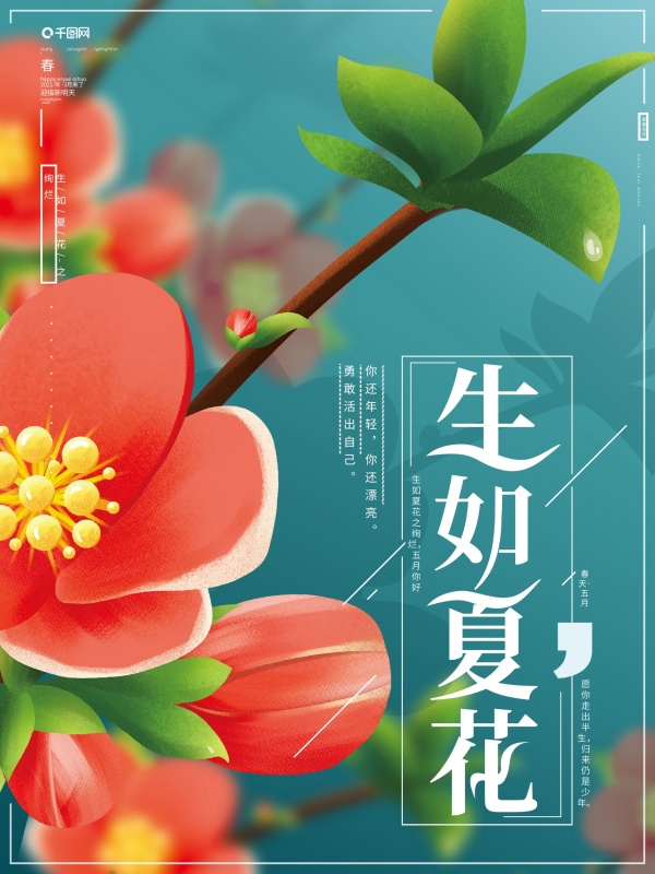 原创手绘唯美海棠生如夏花五月你好节日海报