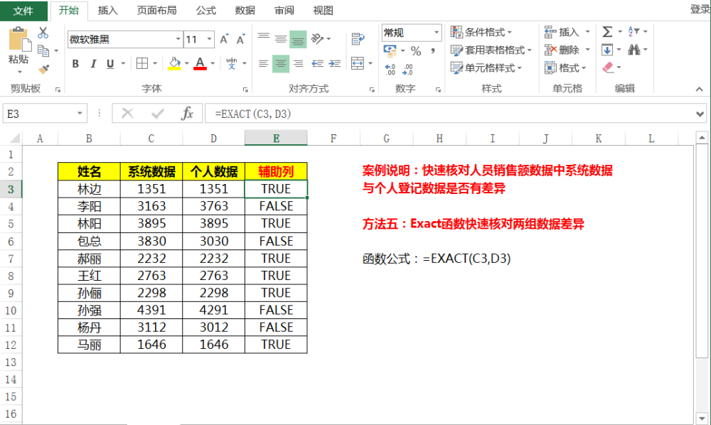 Excel | EXACT函数设置条件格式,标记两组数据的不同