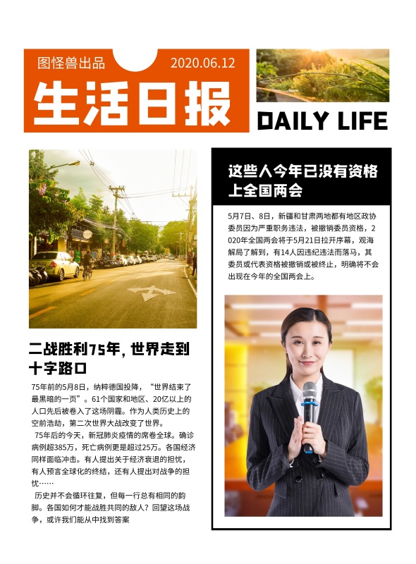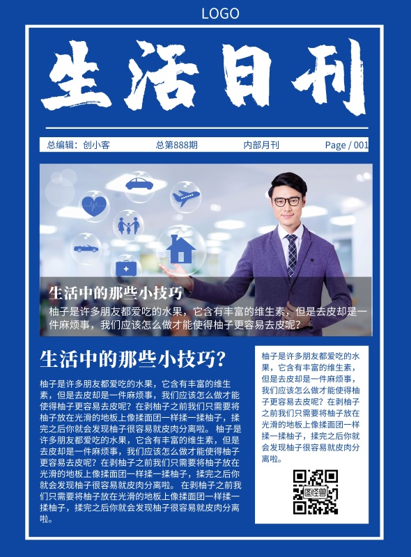 生活日刊报纸新闻资讯蓝色大气竖版海报